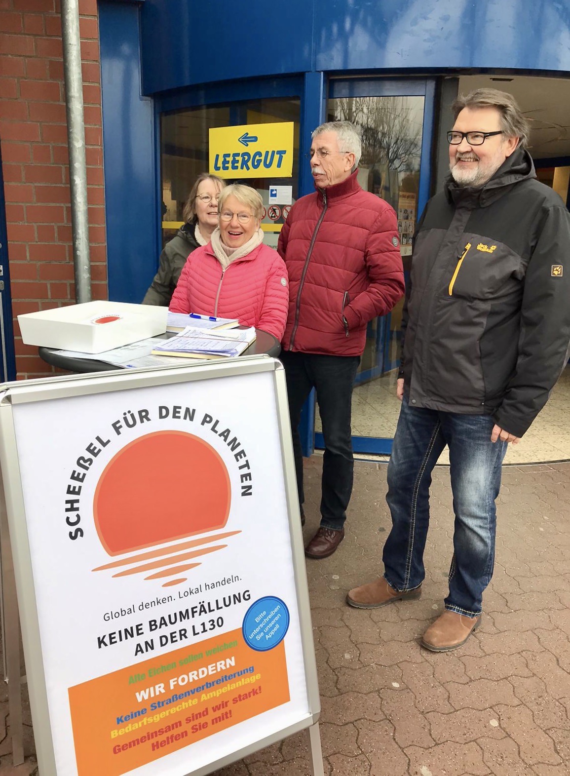 Die Resonanz der Scheeßeler Bürgerinnen und Bürger und auch derer aus umliegenden Ortschaften war überwältigend. An unserem Stand, den wir am Samstag, d. 1. Februar 2020 aufgebaut hatten, wollten wir auf unsere Bürgerinitiative aufmerksam machen und nochmal Interessierte über die Sachlage des Knotenpunktausbaus an der L 130/Fuhrenkamp/Vareler Weg aufklären.